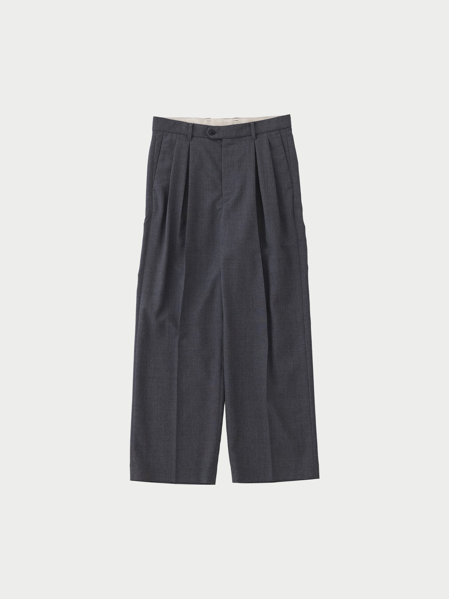 Two-tuck pants made from wool fabric.