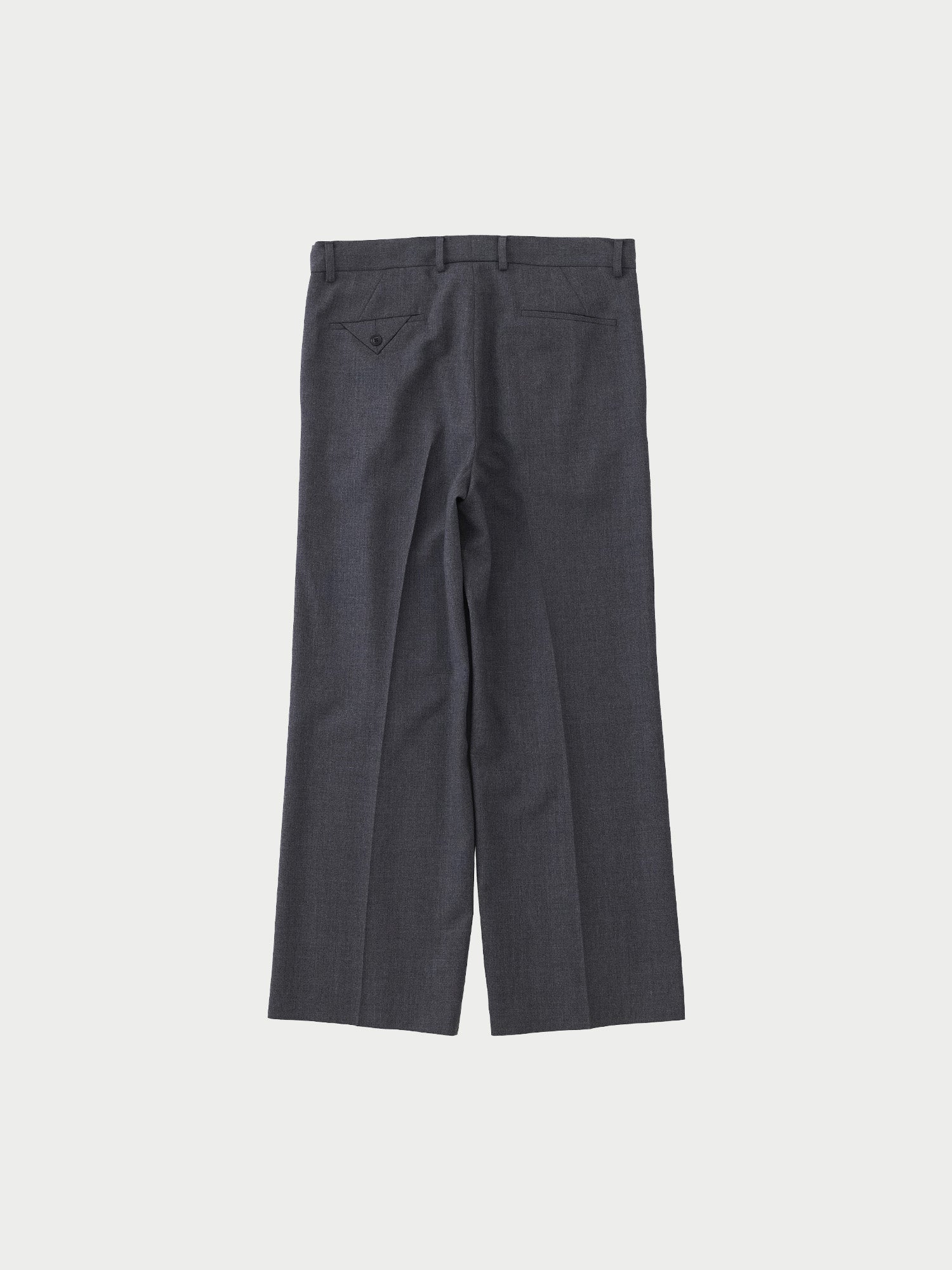 ウエストはスピンドル付きのイージー仕様で、フロントにセンタープレスを入れたワイドフィットのストレートシルエットになります。
