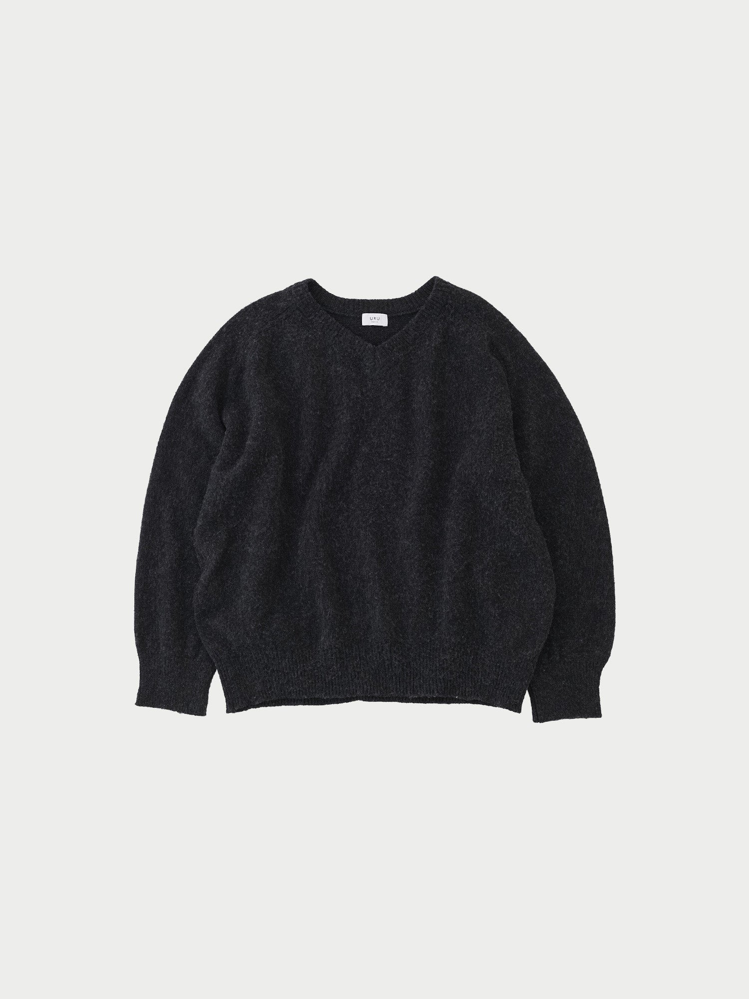 空気を多く含んだ糸を使用し、ソフトで軽い反面、適度なボリューム感を持たせたニットです。