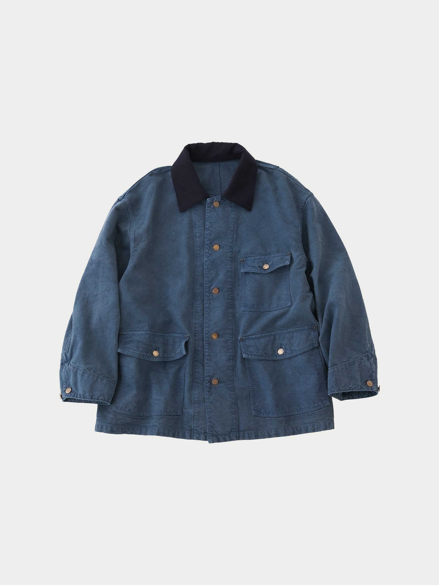 コットンキャンバス素材を使用したカバーオールジャケット。