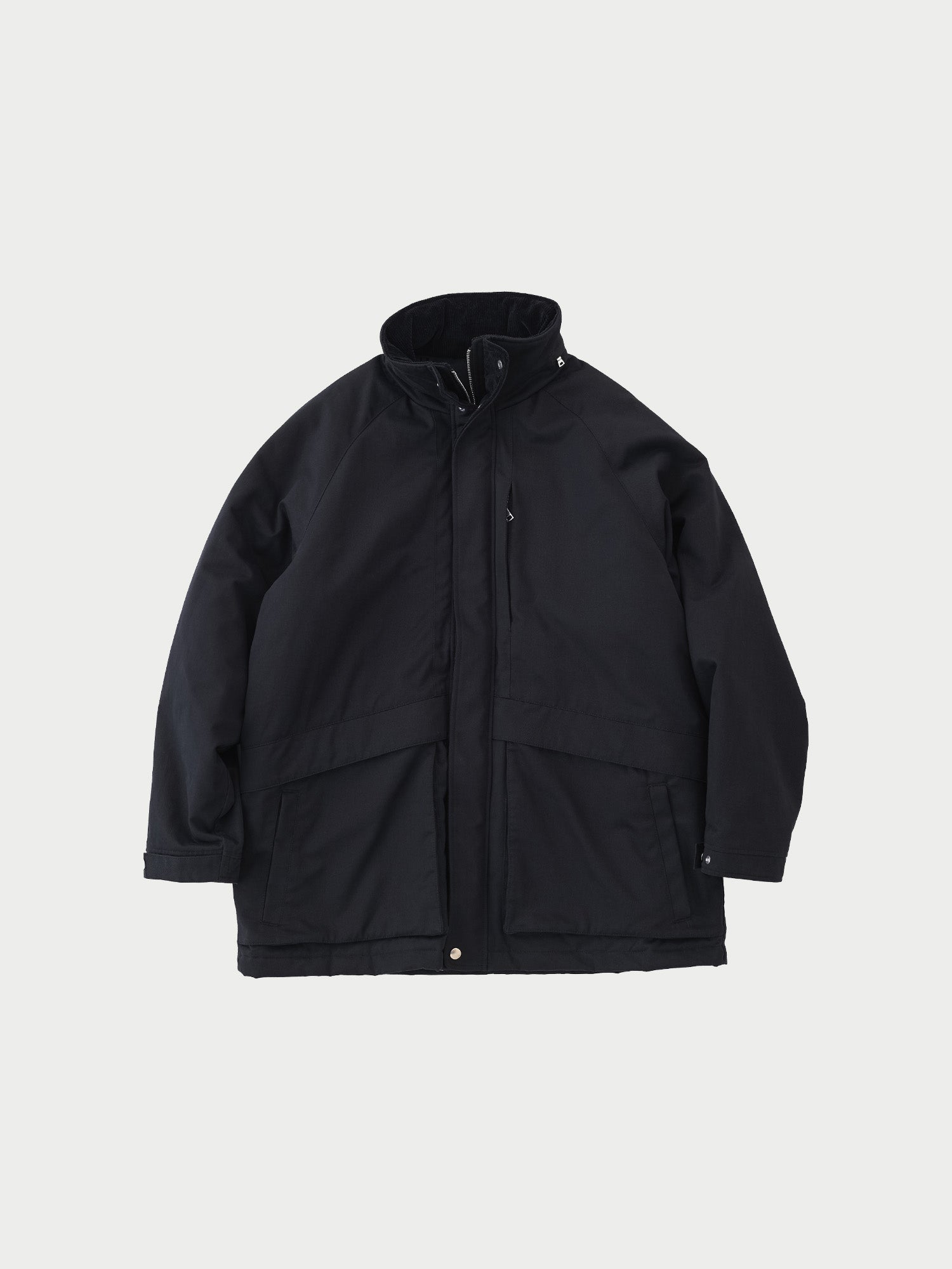 Designed with attention to detail, including large front pockets and snap buttons at the cuffs.