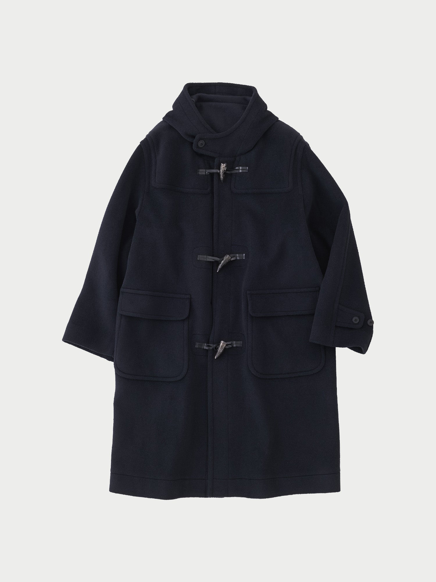 ややゆったりとしたシルエットと、オーセンティックなディテールを採用したダッフルコートです。
