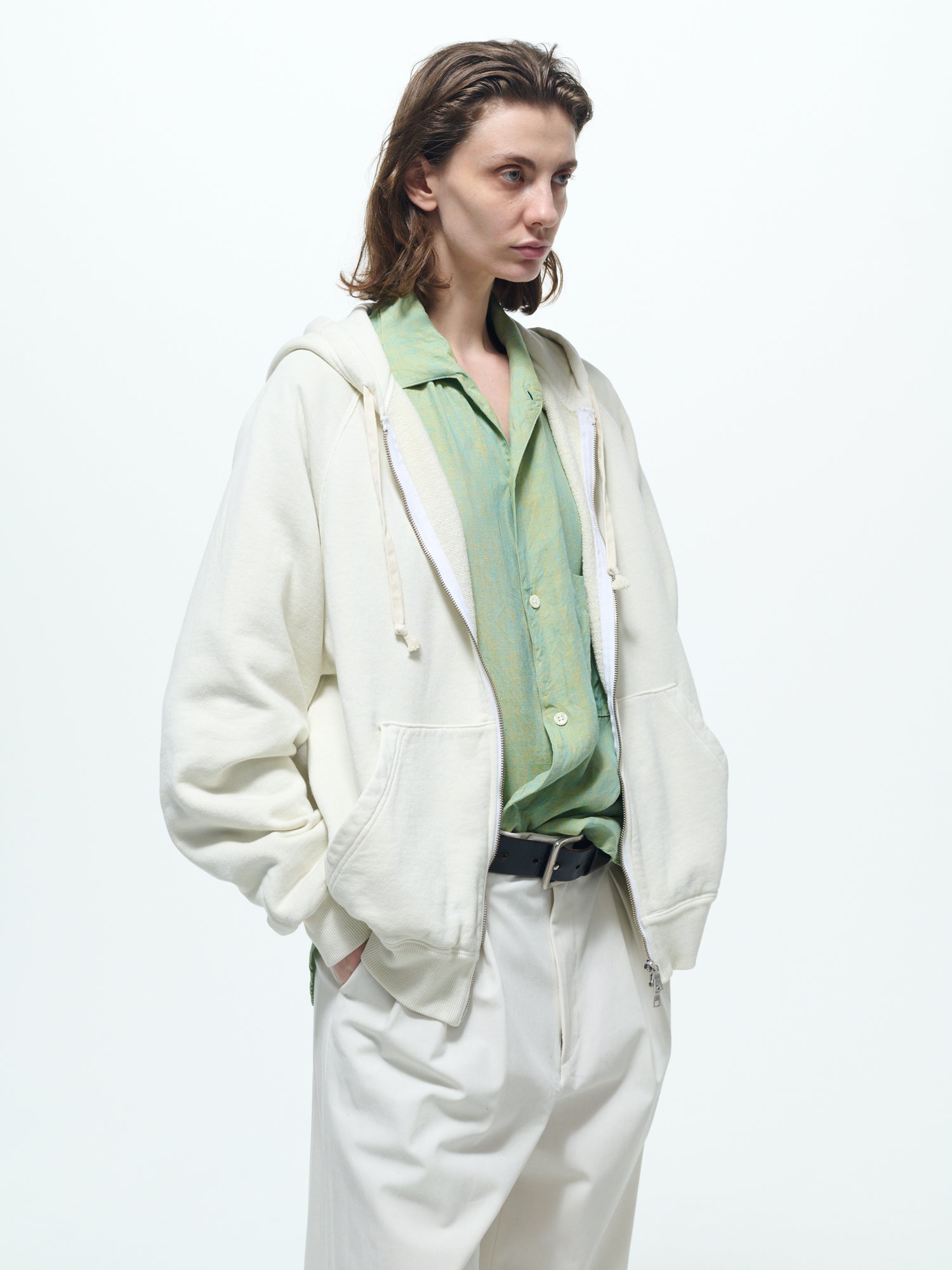 The fit is carefully adjusted to create a well-balanced silhouette that is not overly oversized.