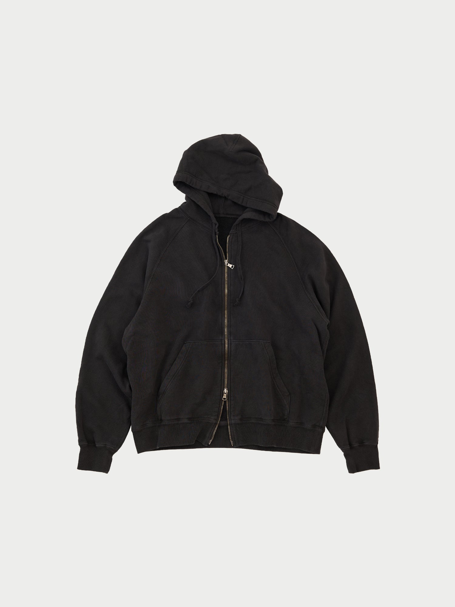 A zip-up hoodie made from cotton fabric.