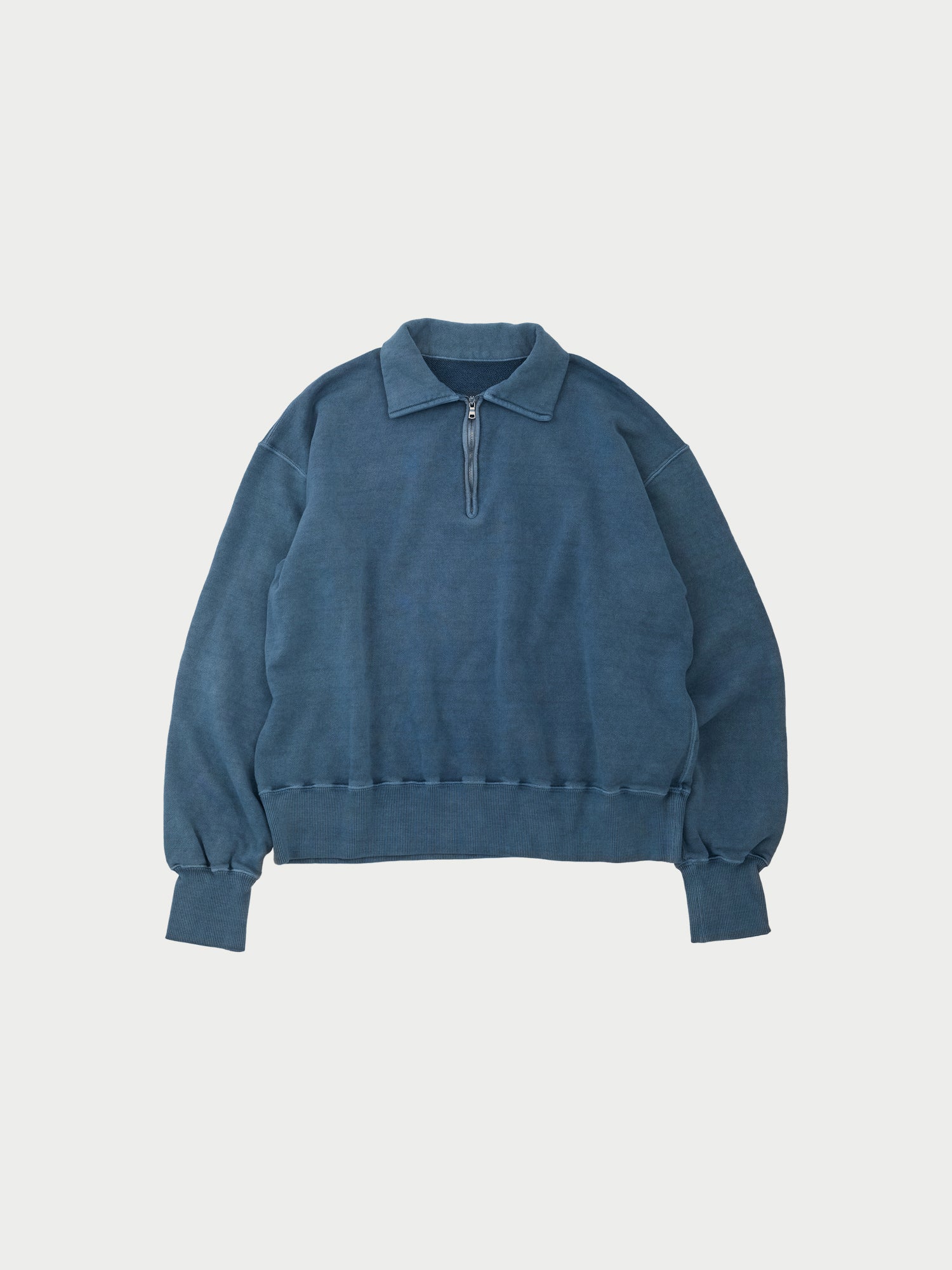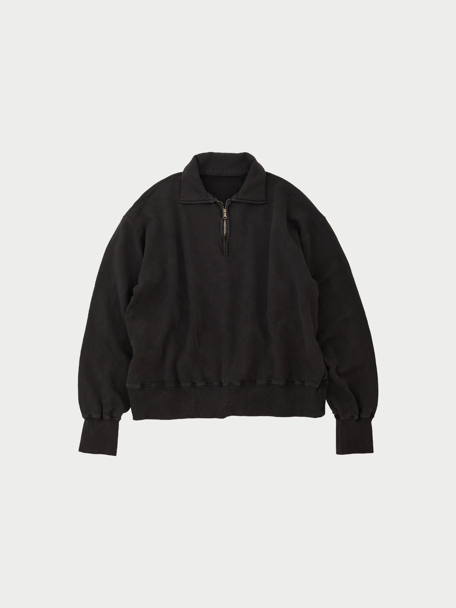コットン素材を使用したハーフジップスウェット。