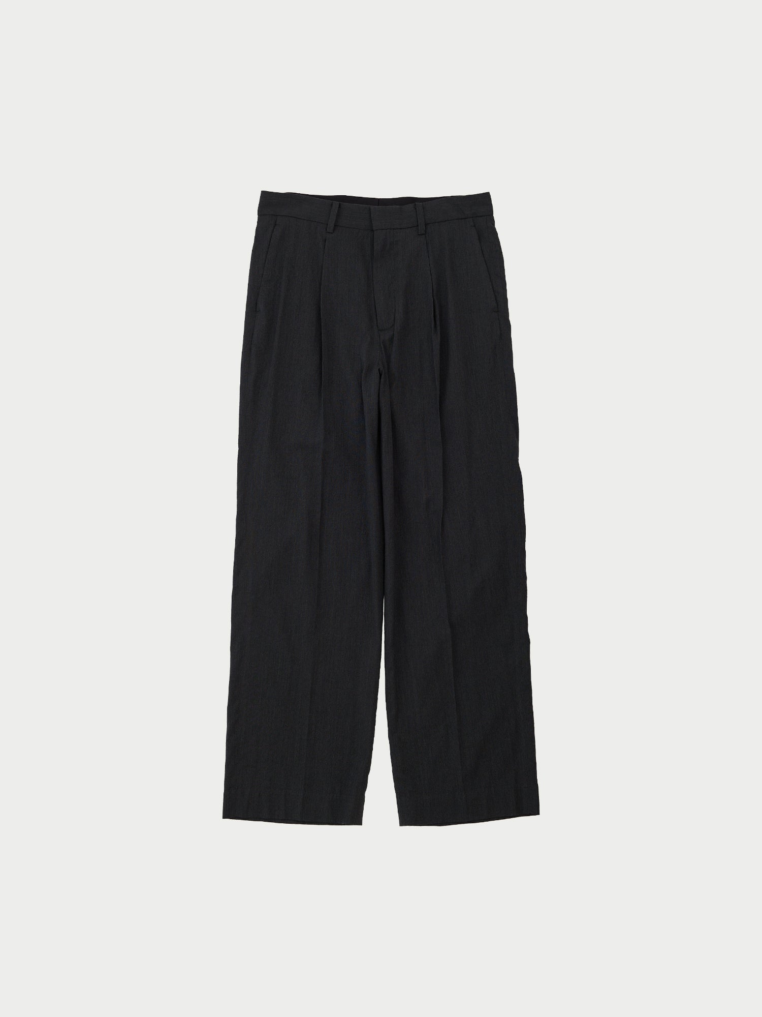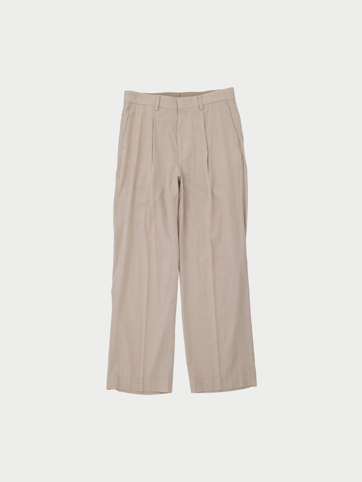 ウールレーヨンシルク素材を使用した1タックパンツ。